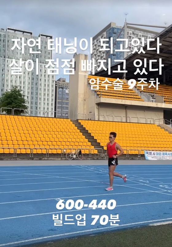 공개된 사진에는 달리기를 하고 있는 진태현의 모습이 담겼다. 그는 암 수술 후에도 꾸준히 운동하며 건강을 되찾고 있다.