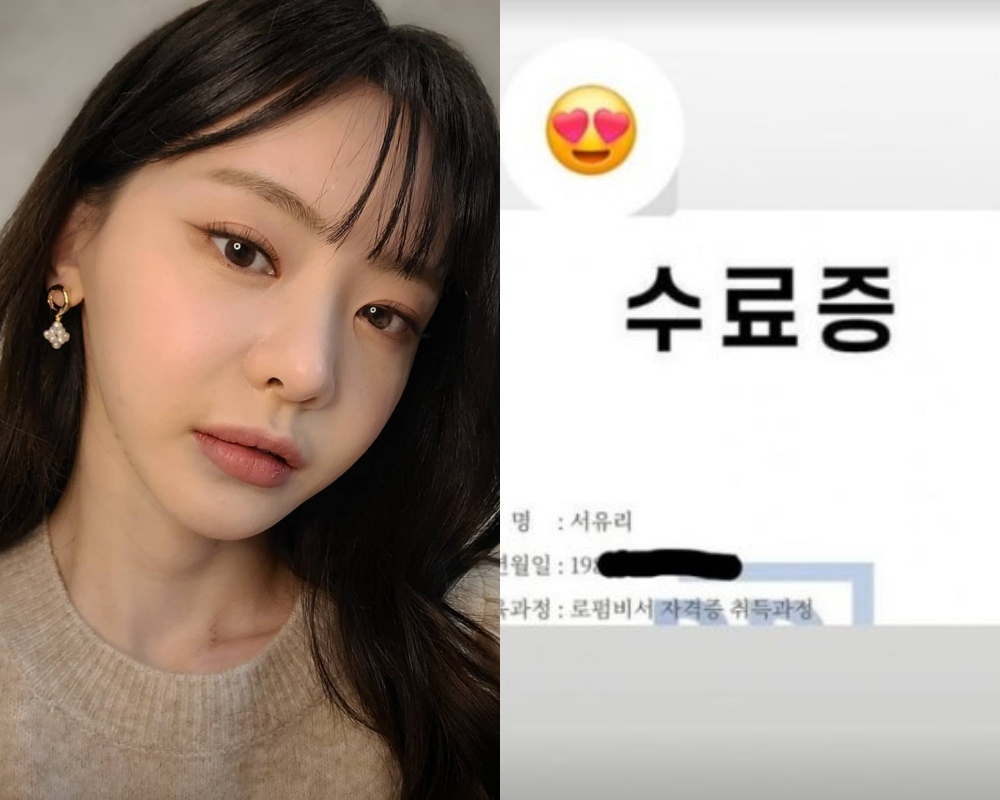 서유리는 최근 개인 SNS에 자신이 취득한 수료증 캡처 사진을 게재했다.