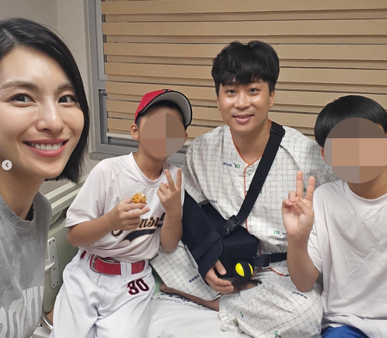 공개된 사진에는 유은성이 병상에 누워 휴식을 취하는 모습이 담겼다. 또 다른 사진 속 유은성은 아내인 배우 김정화, 두 아들과 함께 환한 미소를 짓고 있다.