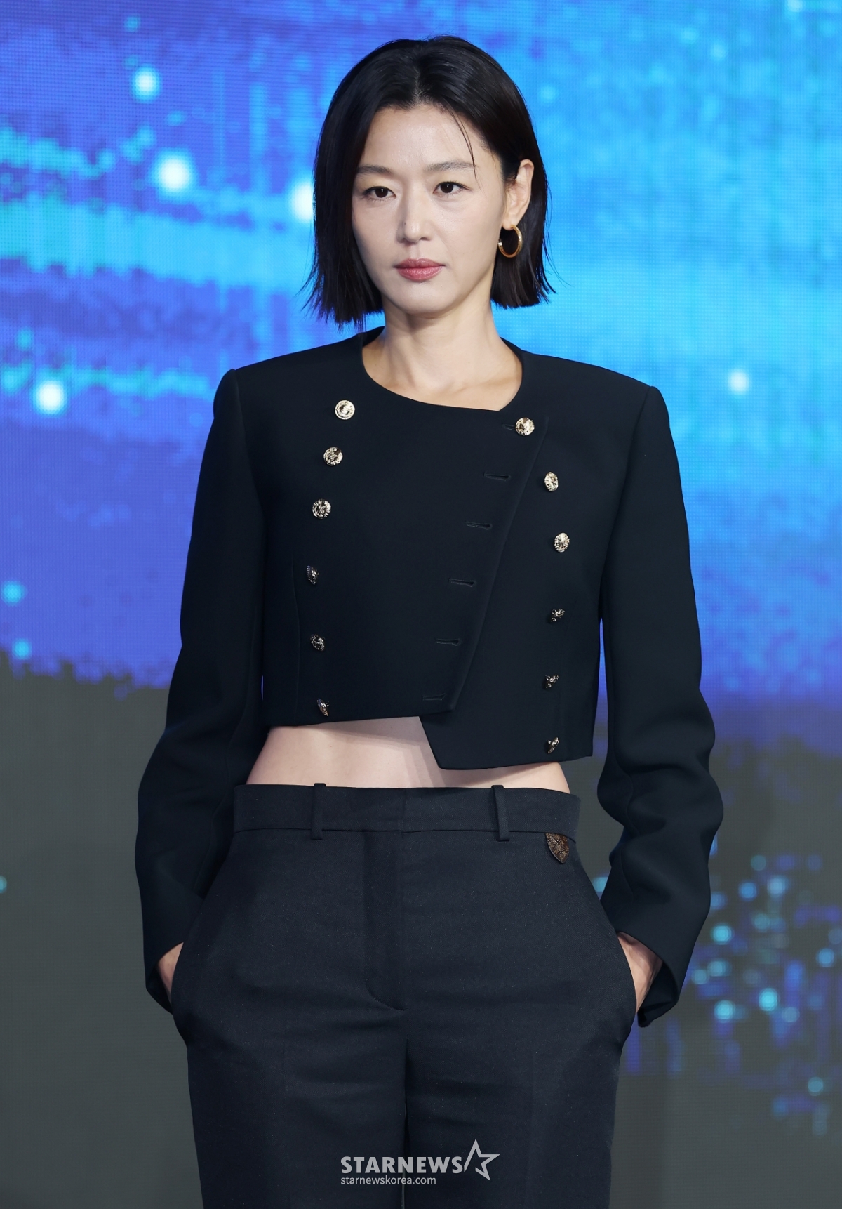 배우 전지현이 2일 오전 서울 포시즌스 호텔에서 진행된 디즈니+ 오리지널 시리즈 '북극성' 제작발표회에 참석해 포즈를 취하고 있다.