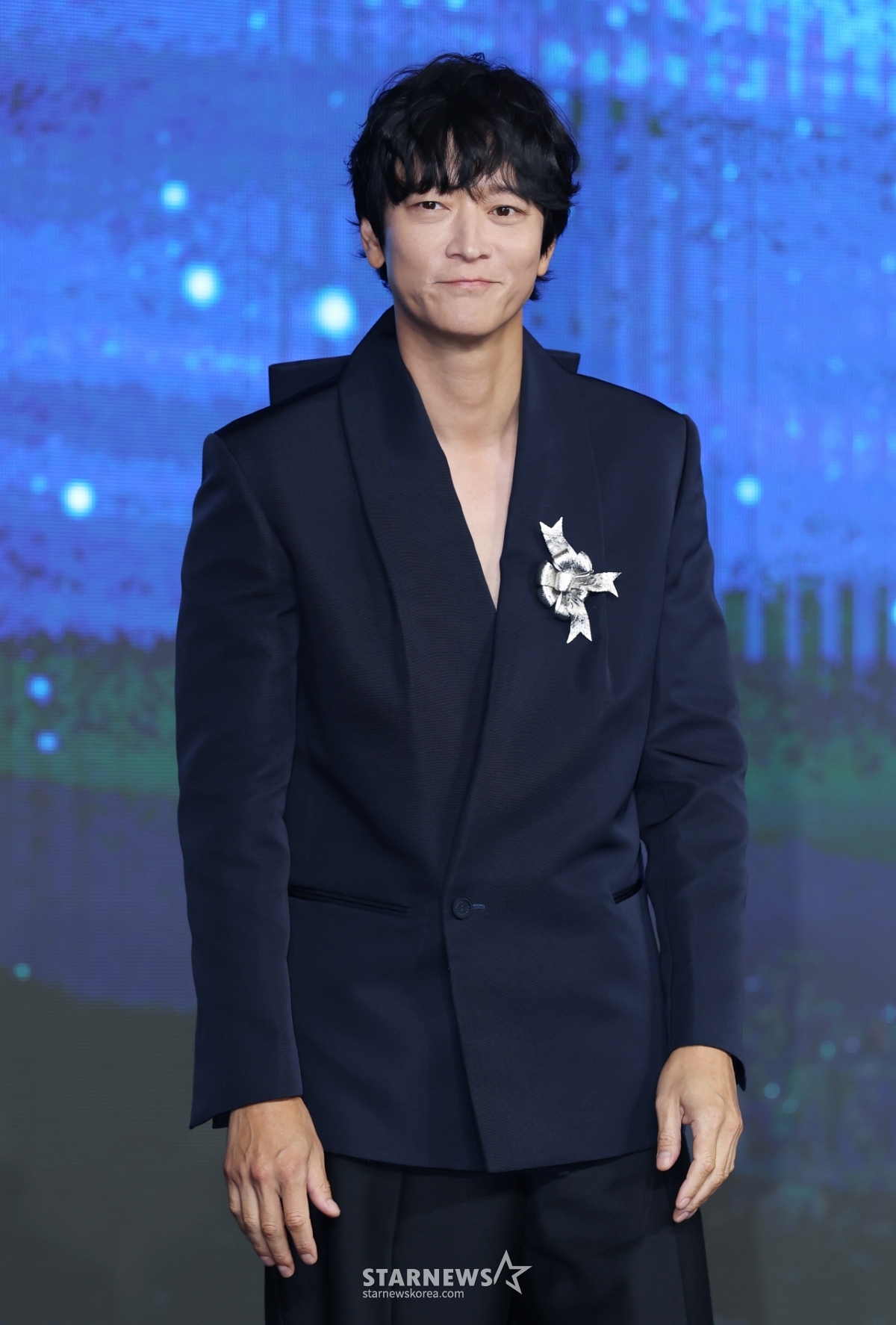 배우 강동원이 2일 오전 서울 포시즌스 호텔에서 진행된 디즈니+ 오리지널 시리즈 '북극성' 제작발표회에 참석해 포즈를 취하고 있다.