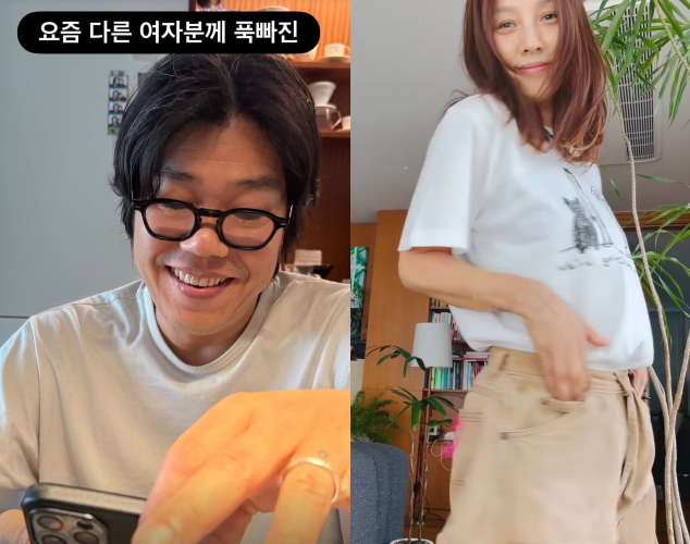 이효리는 2일 "요즘 다른 여자분께 푹 빠진"이라는 문구와 함께 휴대폰을 보며 미소짓고 있는 이상순의 모습을 공개했다.