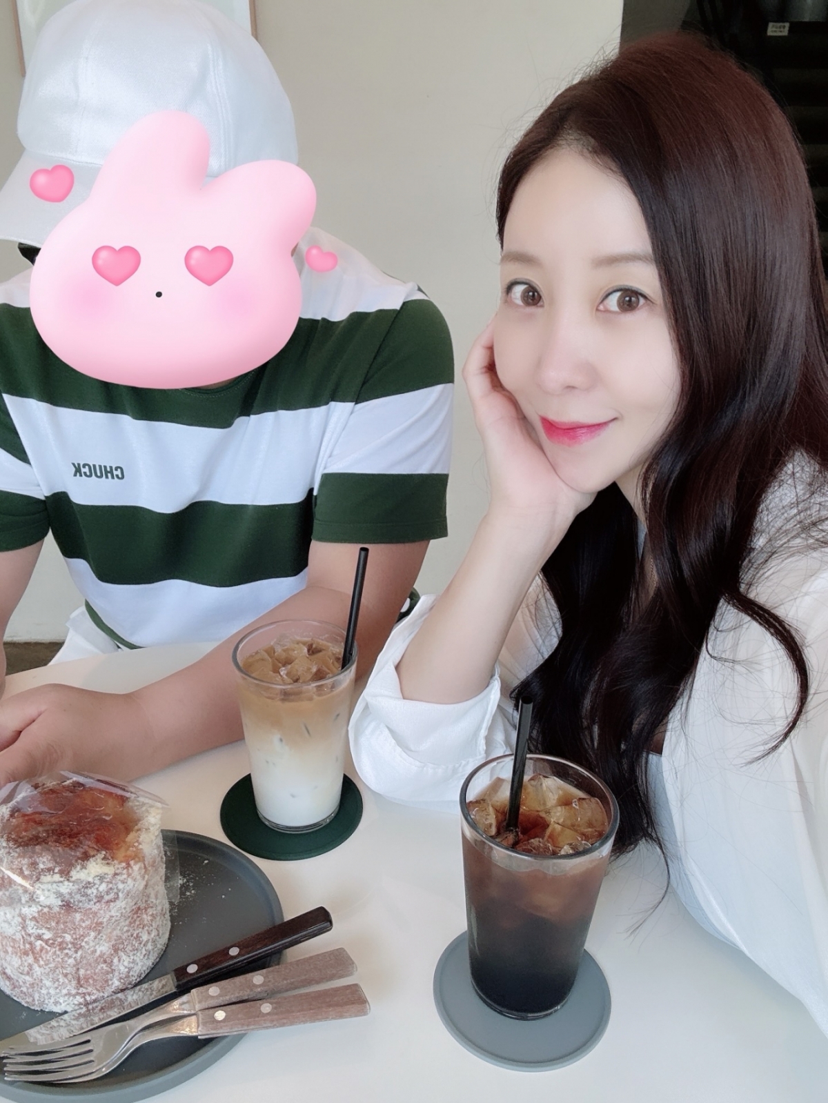 앞서 8월 13일엔 "여유 있었던 지난 주말이 그리워지는 오늘"이라며 윤정수와 카페 데이트 사진을 게재했다. 비록 얼굴은 이모티콘으로 가려져 있었으나, 두 사람이 '예비부부'인 만큼 '럽스타그램'으로 해석되고 있는 이유이다.