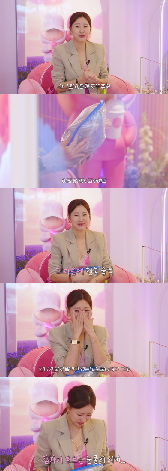 윤현숙은 결국 "언니가 울지 말라고 했는데 눈물이 나려고 한다"면서 눈물을 흘렸다.