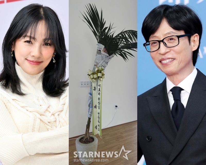 유재석은 '이효리 원장님 번창하세요. 유재석'이라는 문구와 함께 높이 뻗은 대형 야자 식물 화분을 선물했다.
