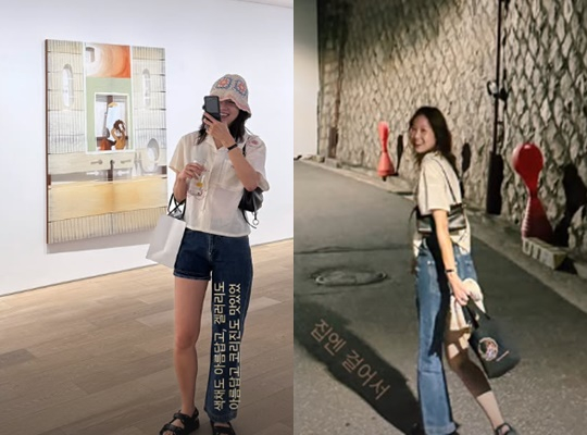 공개된 사진 속 공효진은 지인의 전시회에 간 모습. 남다른 팬츠를 입고 패셔니스타의 면모를 자랑하는 공효진의 모습이 돋보인다.