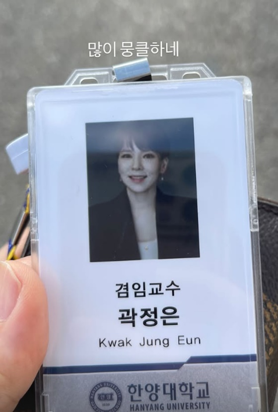 공개된 사진에는 한양대학교 겸임교수가 된 곽정은의 교수증이 담겼다.