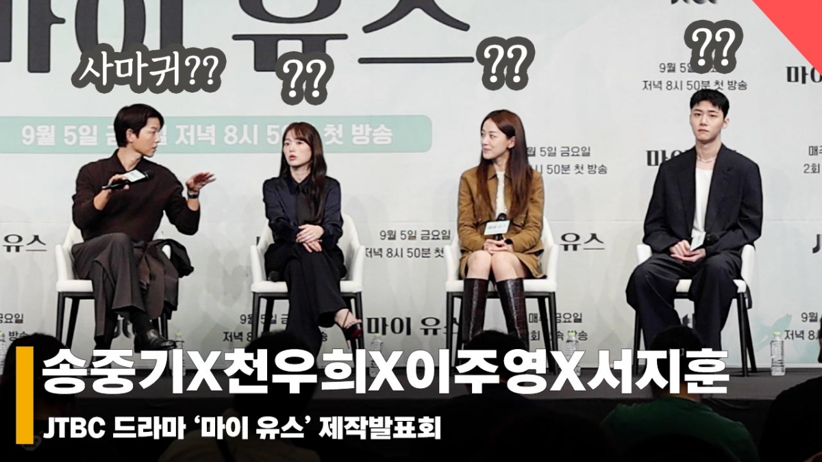 연예방송송중기X천우희X이주영X서지훈, '고현정 사마귀와 경쟁? 마이 유스가 내 스타일' [영상]발행 : 2025.09.04 ・ 14:48오찬우 기자4일 오후 서울 구로구 더링크호텔에서 JTBC 드라마 '마이 유스' 제작발표회가 열렸다.이날 배우 송중기, 천우희, 이주영, 서지훈이 참석했다. 2025.09.04<저작권자 © 스타뉴스, 무단전재 및 재배포 금지>마이유스송중기천우희서지훈고현정유스추천 기사오찬우 기자기자홈좋아요 연예-방송의 인기 급상승 뉴스연예-방송의 최신 뉴스