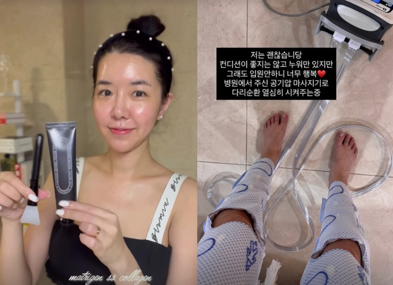 김지혜는 3일 "저는 괜찮습니다. 컨디션이 좋지는 않고 누워만 있지만 그래도 입원 안하니 너무 행복"이라며 "병원에서 주신 공기압 마사지기로 다리순환 열심히 시켜주는 중"이라고 알렸다.