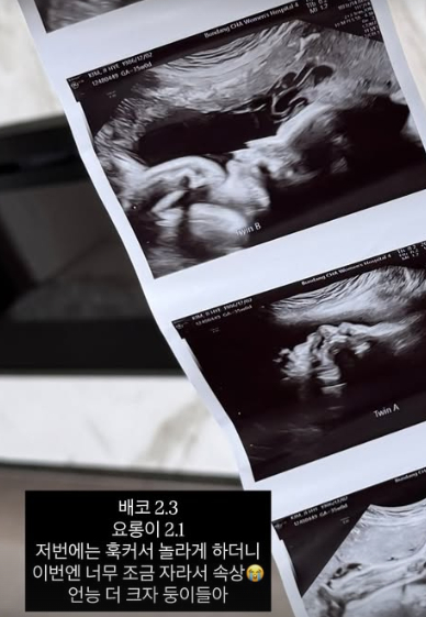 이어 "배코 2.3kg 요롱이 2.1kg 저번에는 훅 커서 놀라게 하더니 이번엔 너무 조금 자라서 속상. 언능 더 크자 둥이들아"라고 전했다.
