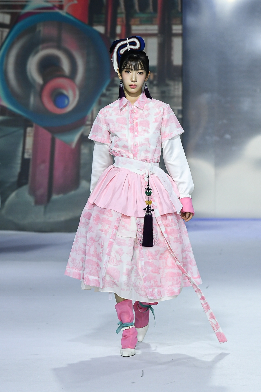 에트왈은 전통민화를 뚜왈드주의 기법으로 풀어낸 한복 브랜드다. 이날 수윤은 한국 전통의 아름다움을 살린 유니크한 의상을 자신만의 매력으로 완벽하게 소화해 감탄을 자아냈다.