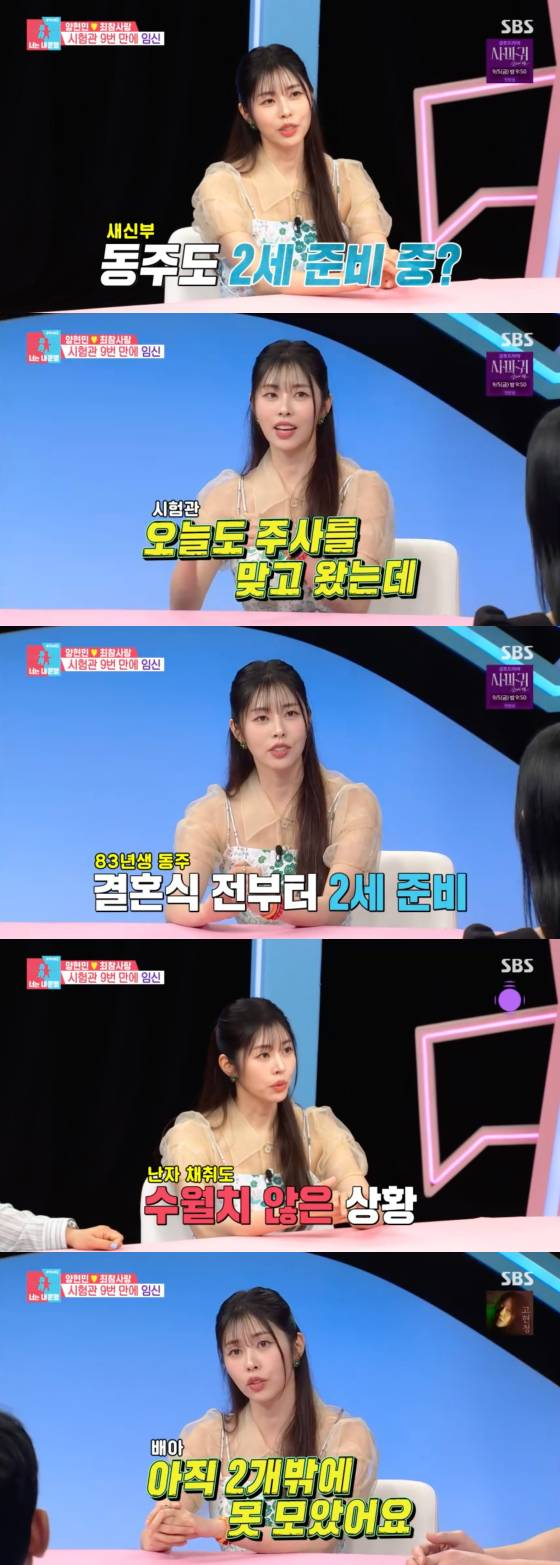83년생인 그는 당시 방송에서 "현재 2세 준비 중이다. 오늘도 (시험관 시술) 주사를 맞고 왔다. 사실 결혼식 전부터 2세를 준비했다"고 고백했다.