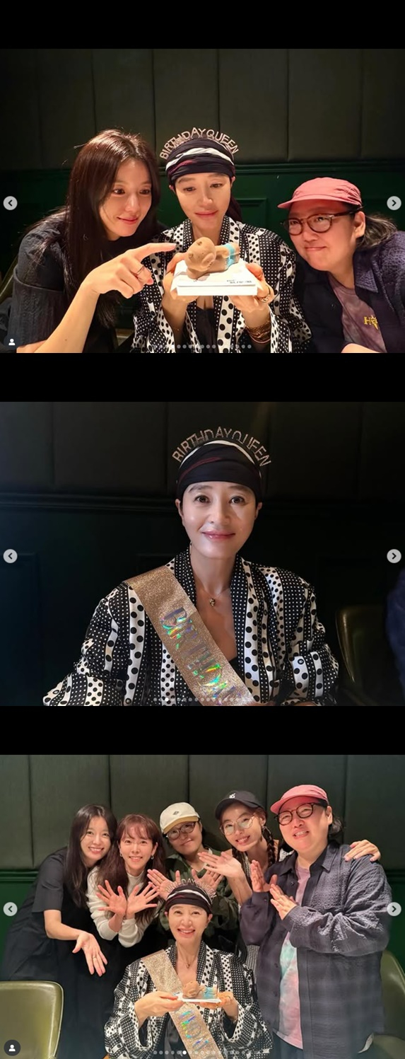 김혜수는 6일 자신의 개인계정에 동료 배우들과 함께 한 사진을 게재했다. 공개된 사진 속 김혜수는 배우 한효주, 한지민, 박준면, 윤소이 등 절친한 후배들과 함께 생일 파티를 즐기고 있다.