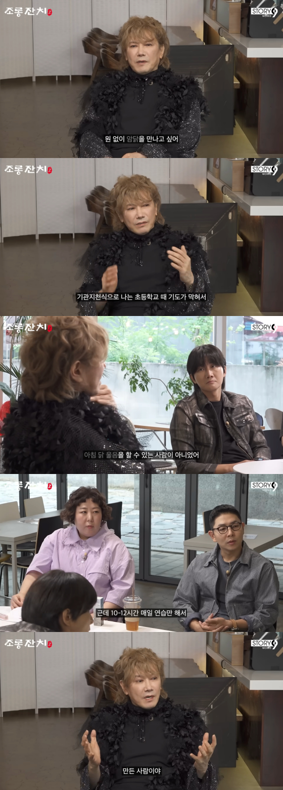 그는 "나는 초등학생 때 기관지 천식으로 기도가 막혀서 노래를 할 수 있는 사람이 아니었다"고 어린 시절을 회상했다.