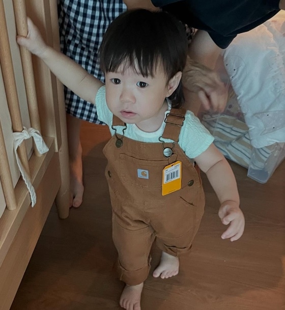 공개된 사진에는 귀여운 멜빵바지를 입고 있는 강재준 아들 현조 군의 모습이 담겼다.