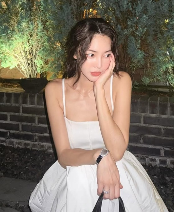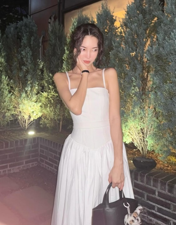 공개된 사진에는 하얀색 원피스를 입고 있는 김윤지의 모습이 담겼다.