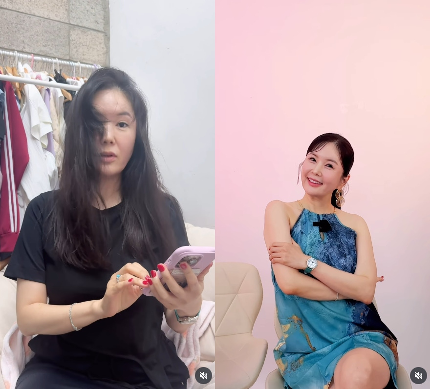 영상 속 장영란은 방금 자고 일어난 듯 부스스한 헤어스타일에 화장기 없는 민낯으로 휴대폰을 바라보고 있는 모습. 이후 카메라를 가리고 다시 나타난 장영란은 풀메이크업에 화려한 의상으로 갈아입은 후 해맑은 미소를 보이고 있다.