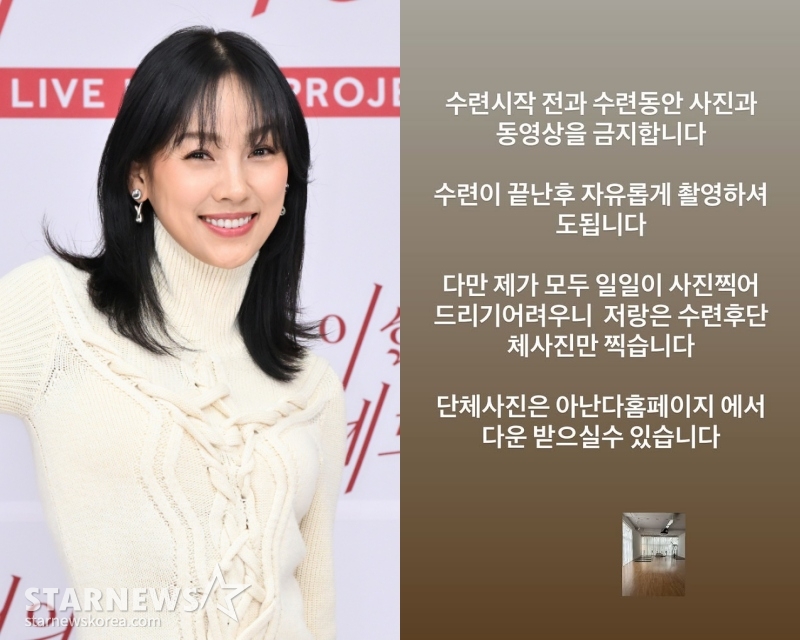 이어 이효리는 "다만 제가 모두 일일이 사진 찍어드리기 어려우니 저랑은 수련 후 단체 사진만 찍습니다. 단체 사진은 아난다 홈페이지에서 다운받으실 수 있습니다"라고 공지했다.