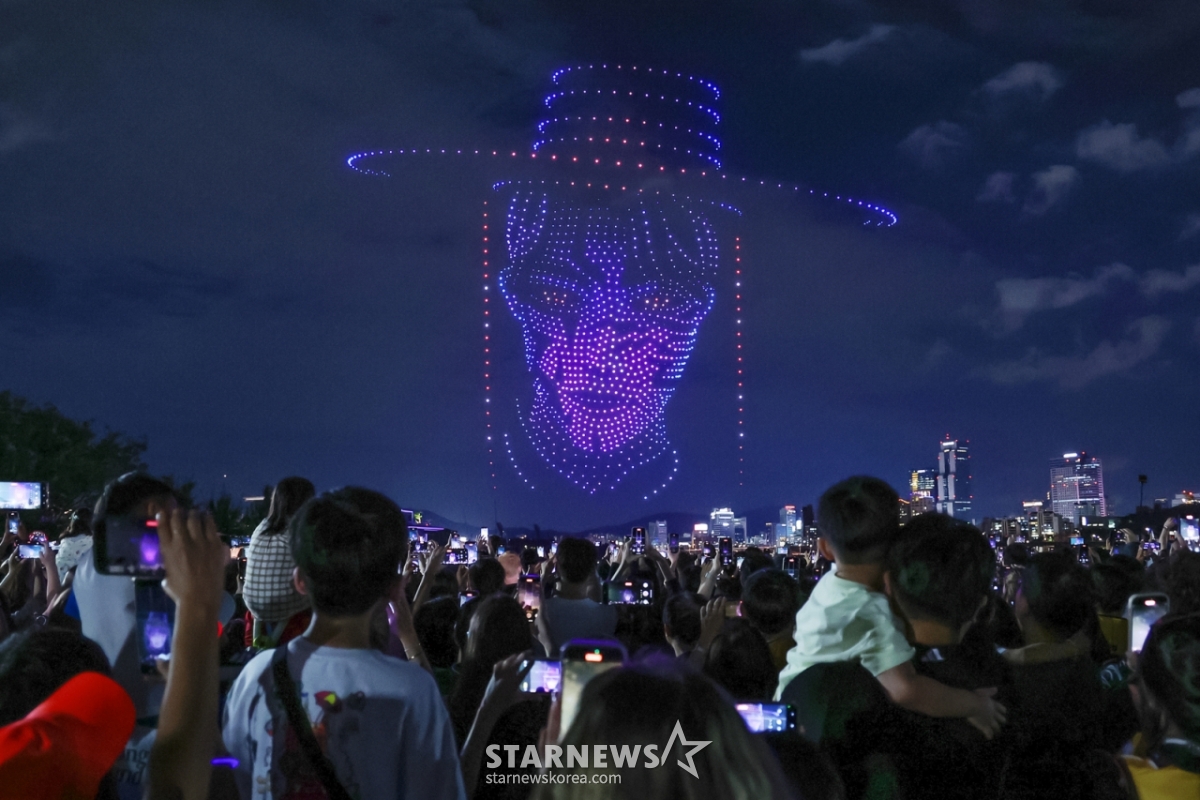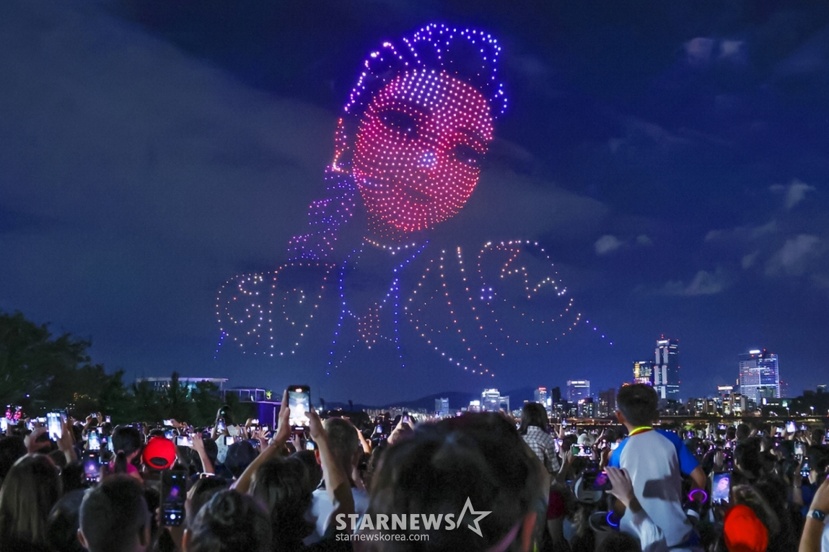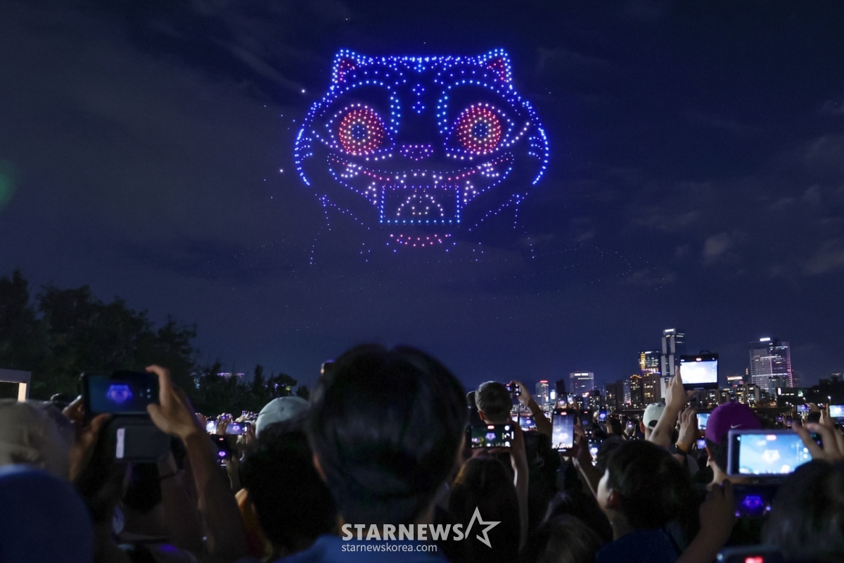 서울시는 지난 7일 오후 서울 뚝섬한강공원에서 1200여대의 드론을 띄워 '케데헌' 캐릭터를 보여주는 '드론 라이트쇼'를 펼쳤다.