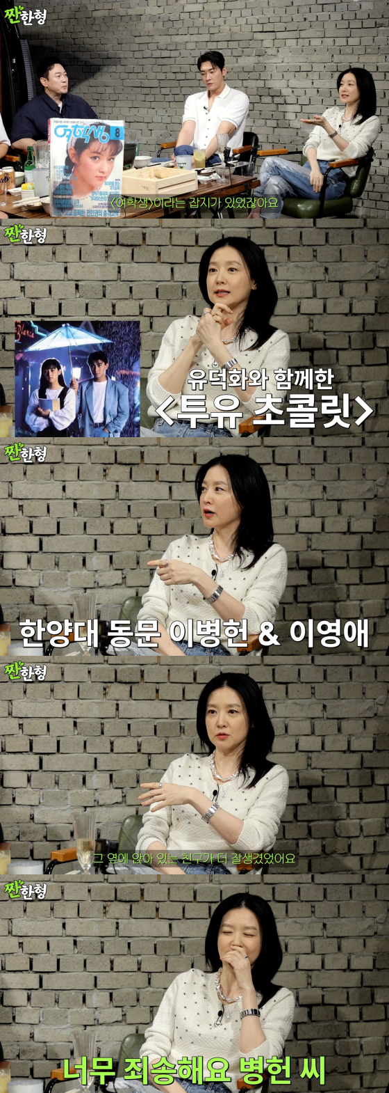 이어 "대학생 때 아르바이트를 했다. 아르바이트로 광고를 찍으러 에이전시에 갔는데 배우 (이)병헌 씨가 앉아 있었다. 병헌 씨한테 너무 미안한데 그 옆에 앉아 있는 친구가 더 잘생겼었다. 그리고 저 말고 여자가 한 명 더 있었다. 그래서 항상 넷이서 의상 카탈로그를 찍었다. 그 다른 여자 한 분이 배우 박선영 씨였다"고 설명했다.