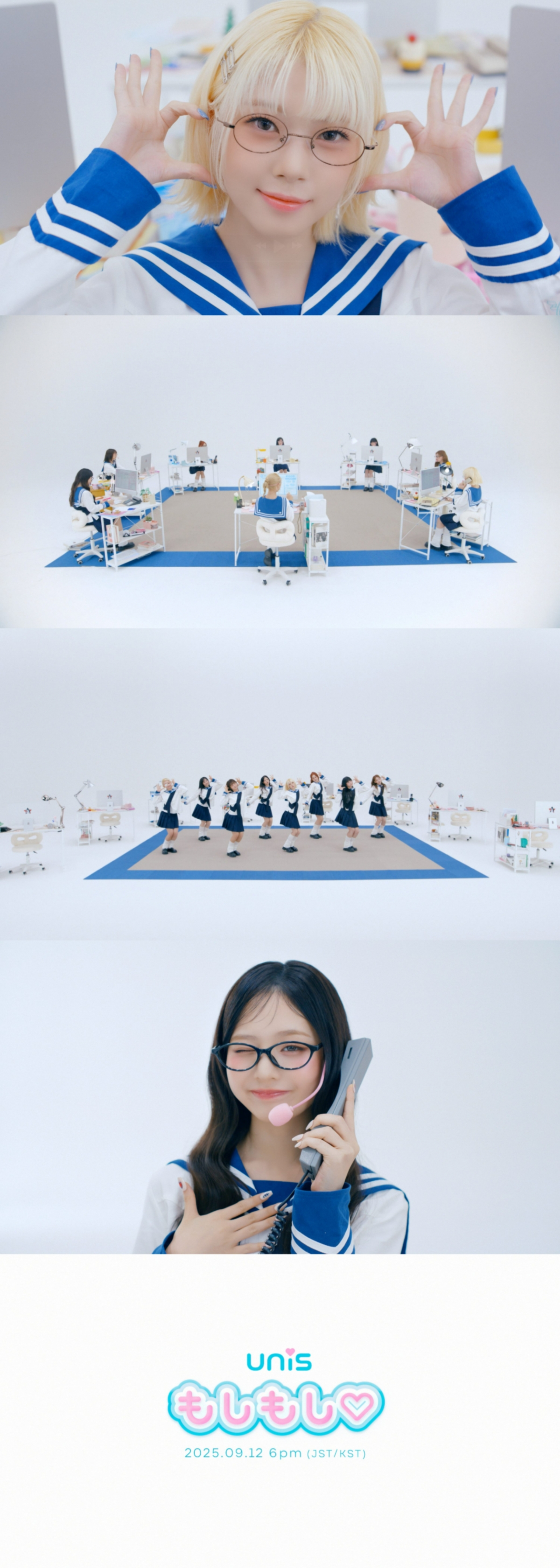 유니스(진현주, 나나, 젤리당카, 코토코, 방윤하, 엘리시아, 오윤아, 임서원)는 11일 정오 공식 SNS 채널을 통해 첫 번째 일본 디지털 싱글 '모시모시♡(もしもし♡)'의 뮤직비디오 티저를 선보였다.