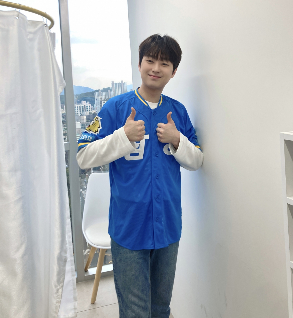 영상에서 삼성의 열혈 팬으로 잘 알려진 이찬원은 삼성 유니폼으로 환복 한 후 스튜디오에 입장했다.