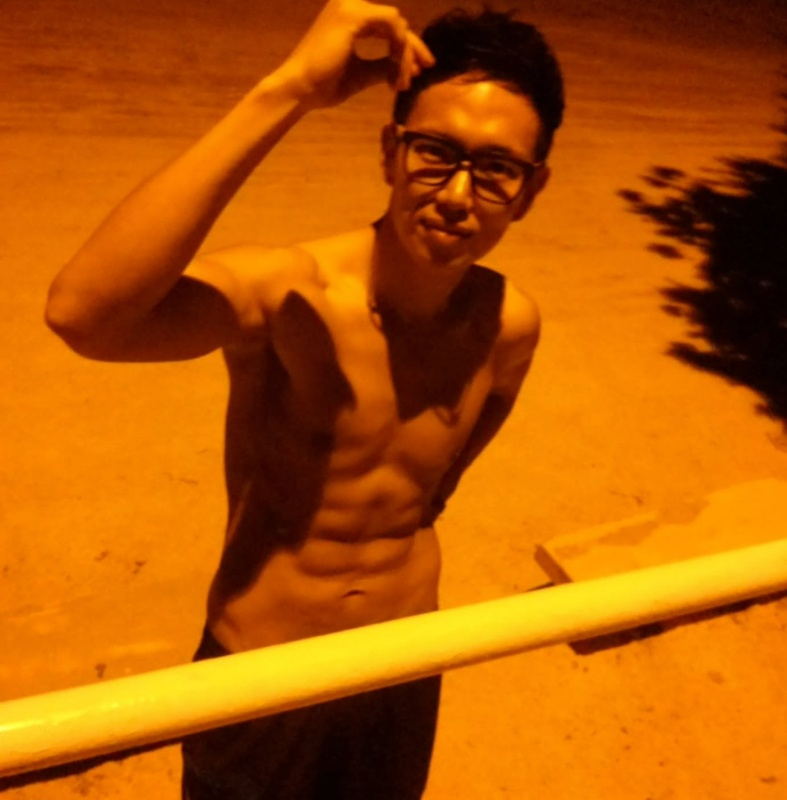 사진 속에는 장성규가 야외에서 상의를 벗고 근육을 자랑하는 모습이 있었다. 20대 시절로 보이는 그는 마른 체형과 선명한 식스팩을 자랑했다.