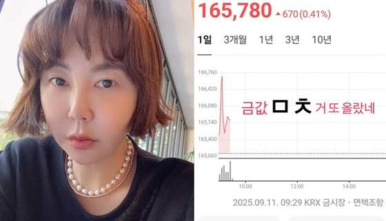 이에 황혜영은 "금값 ㅁㅊ(미친) 거 또 올랐네"라며 놀란 심경을 드러냈다.