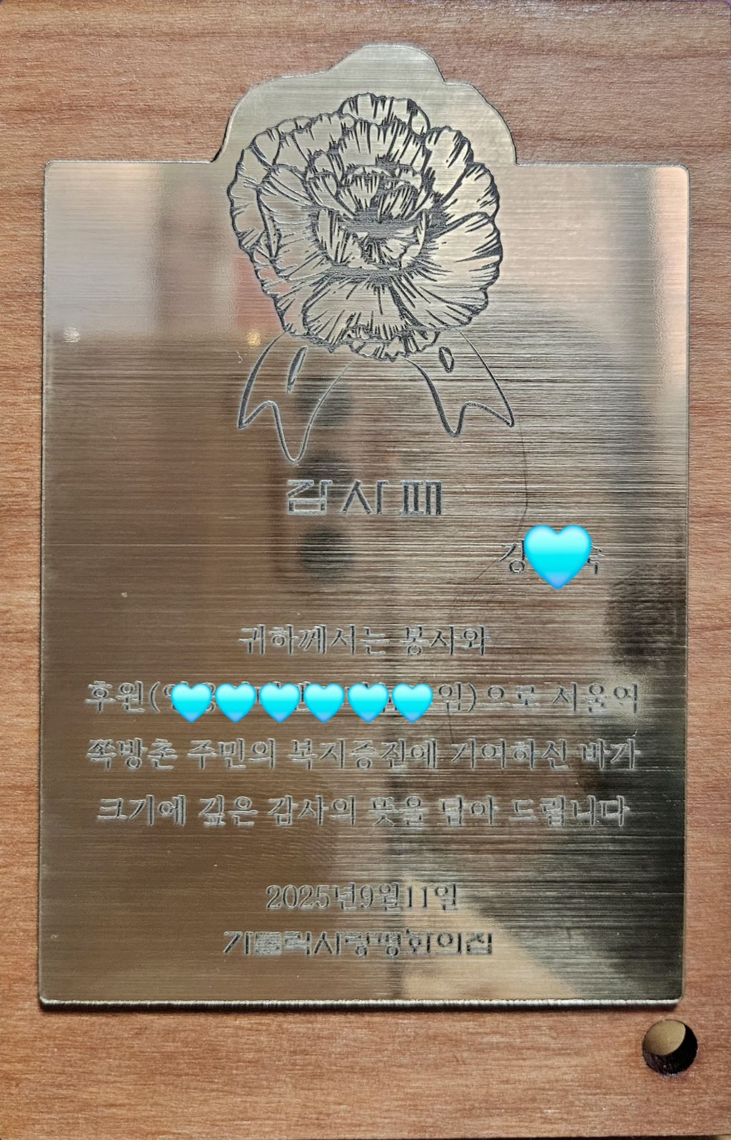 이날 가톨릭사랑평화의집 사무국장 윤병우 미카엘 신부는 오랜 시간 꾸준히 시설을 위한 기부와 봉사를 이어온 '영웅시대밴드(나눔 모임)'에 감사패를 전달하며 격려했다.