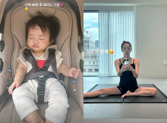 손담비는 지난 9일 유모차에서 잠든 딸 해이양의 사진을 공개했다. 손담비는 "산책 10분 후 해이는 기절"이라며 잠들어 있는 딸의 귀여운 모습을 공유했다.