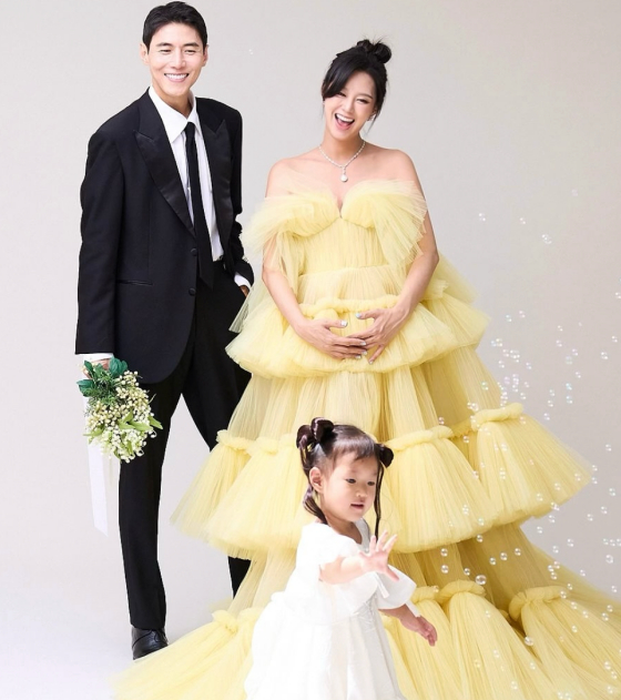 지소연은 14일 개인 SNS를 통해 사진 여러 장을 공개했다. 사진에는 지소연, 송재희 부부가 딸 하엘과 만삭 촬영에 나선 모습이 그려졌다.
