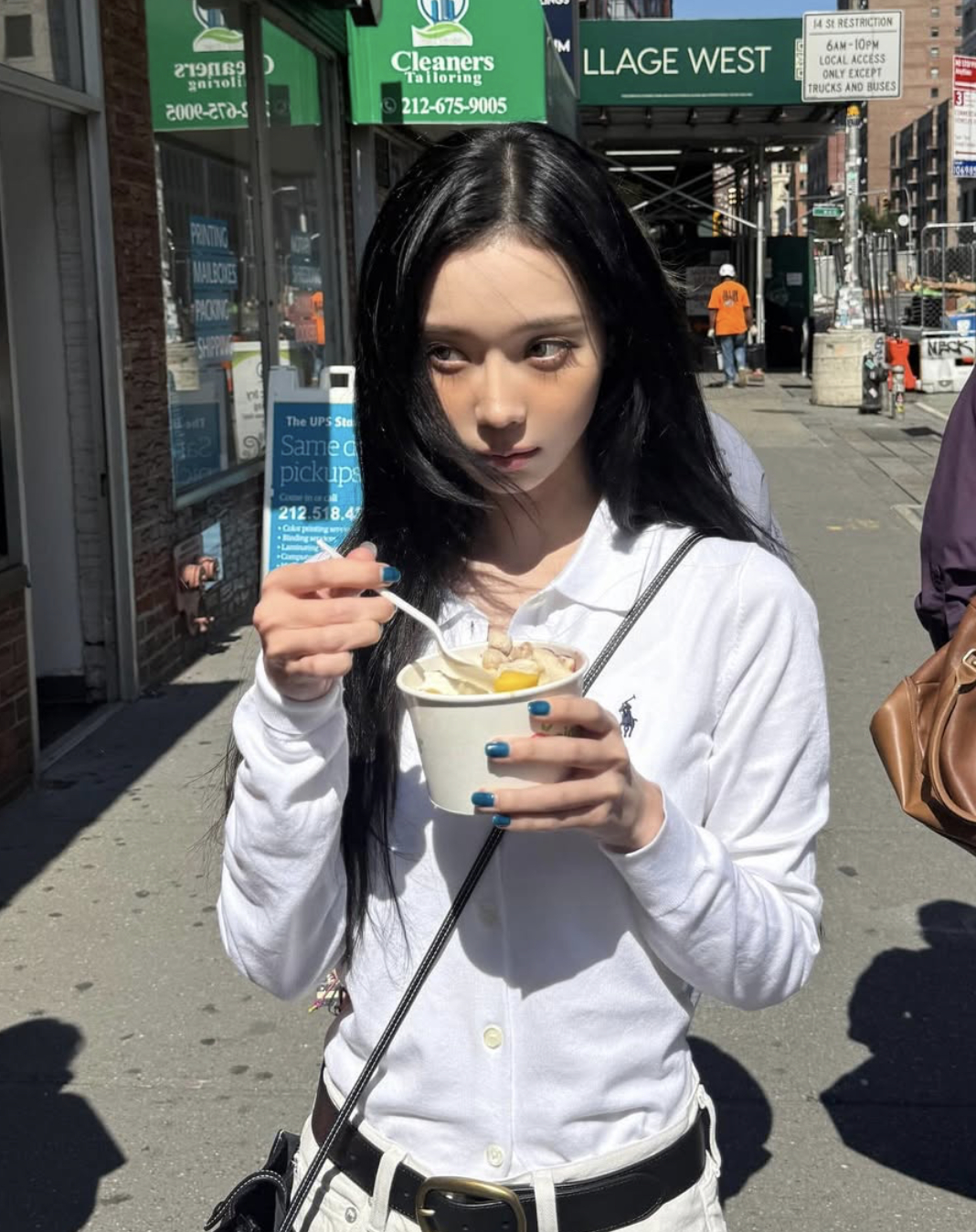 또 다른 컷에서는 현지 디저트를 즐기며 카메라 앞에서 자연스러운 포즈를 취해 사랑스러운 매력을 더했다.
