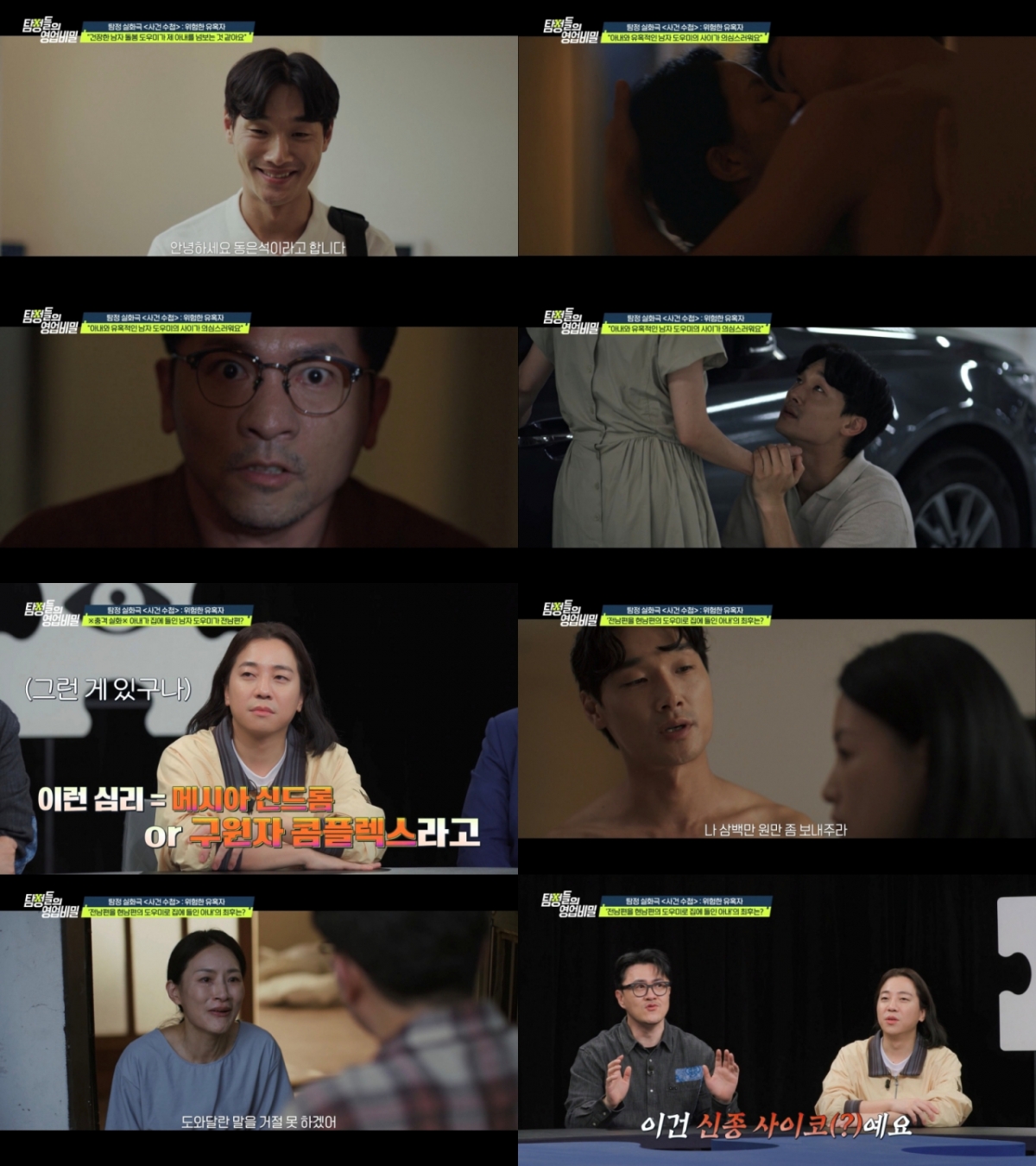 탐정단의 조사 결과, 의뢰인의 아내와 도우미는 3년 전 이혼한 부부 사이였던 것으로 드러났다. 빚에 시달리다 야반도주했던 전남편이 다시 나타나자, 아내는 돈도 주고 집안일까지 해주며 몰래 왕래를 했다. 심지어 현남편을 속이고 불륜 행각까지 지속해왔다. 모든 사실이 드러나자 의뢰인의 아내는 "불쌍해서 그랬다, 도와달라는 말을 거절할 수 없었다"며 눈물로 호소했다. 그러나 김풍은 "동정을 사랑이라고 착각하는 것"이라고 일침을 날렸고, 데프콘은 "이건 신종 사이코다"라며 경악했다. 남성태 변호사는 "자신이 타인을 구원할 수 있다고 믿는, 일종의 '구원자 콤플렉스'"라고 분석하며 소름 끼치는 진단을 내놨다.