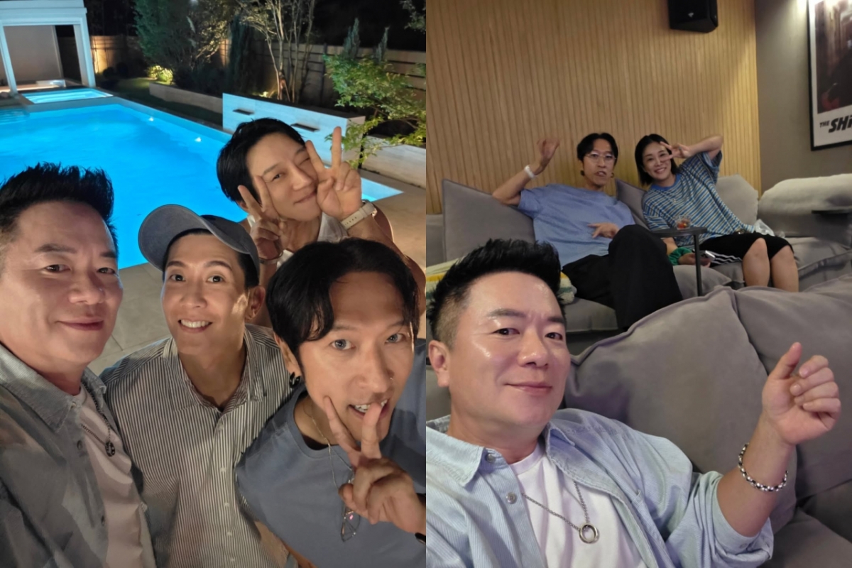 브라이언은 15일 자신의 인스타그램에 "오늘 오랜만에 뭉친 '컬투쇼' 패밀리 집들이"라는 글과 함께 여러 장의 사진을 공개했다.