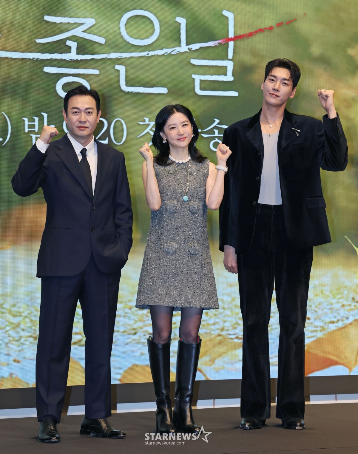 연예방송'은수 좋은날, 화이팅'[★포토]발행 : 2025.09.16 ・ 14:51이동훈 기자배우 박용우, 이영애, 김영광이 16일 오후 서울 구로구 더세인트에서 진행된 KBS 2TV 드라마 '은수 좋은 날' 제작발표회에 참석해 포즈를 취하고 있다.가족을 지키고 싶은 학부모 강은수와 두 얼굴의 선생 이경이 우연히 얻은 마약 가방으로 벌이는 위험 처절한 동업 일지 '은수 좋은 날'은 오는 20일 첫 방송된다. /2025.09.16<저작권자 © 스타뉴스, 무단전재 및 재배포 금지>은수좋은날이영애김영광박용우화이팅은수추천 기사이동훈 기자기자홈좋아요 연예-방송의 인기 급상승 뉴스연예-방송의 최신 뉴스