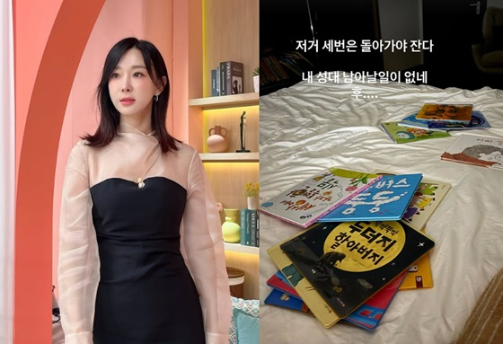딸들을 재우기 위해 책을 읽어준 것으로 보이는 이지혜는 "내 성대 남아날 일이 없네"라고 전했다.