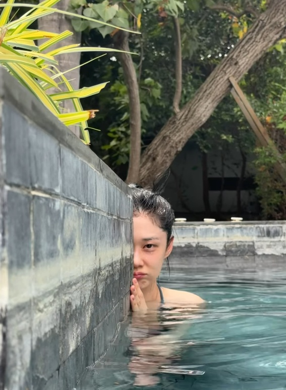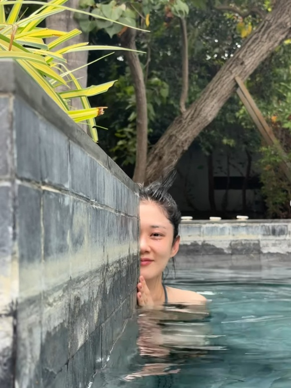 영상 속 장나라는 수영장에 들어가 카메라를 향해 장난기 가득한 표정을 지어보였다.
