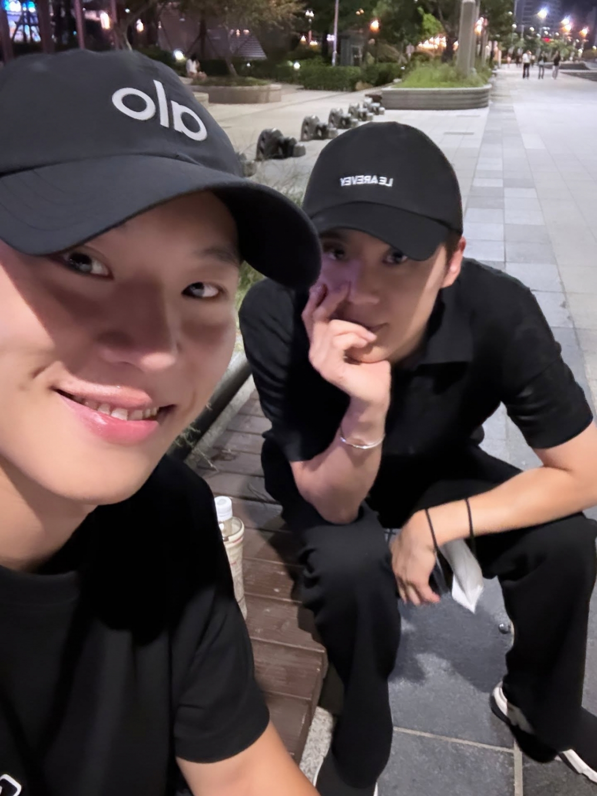 김준수는 17일 새벽 자신의 인스타그램에 "(김)성철이랑 오래만에 해운대에서 담소"라는 메시지와 함께 사진 한 장을 게재했다.