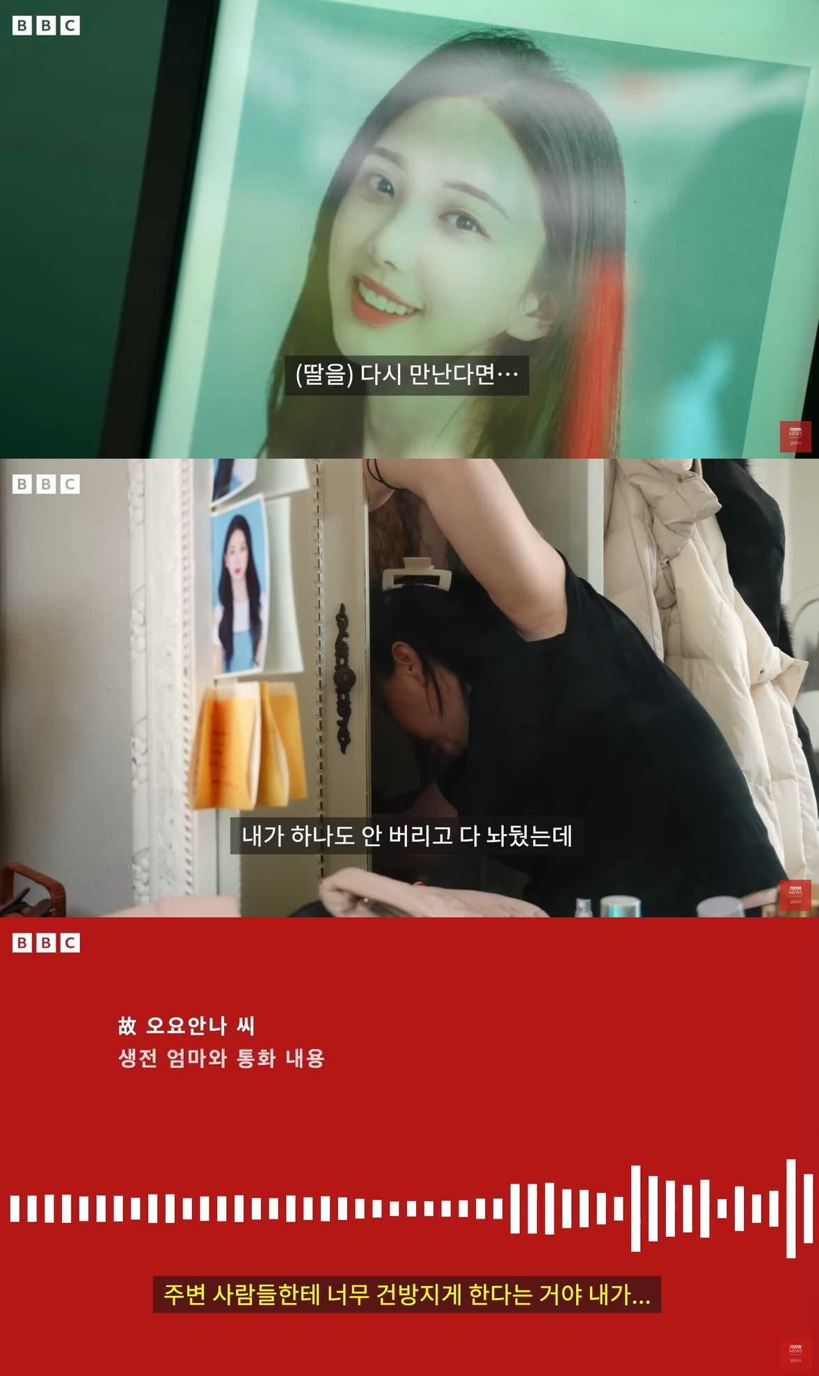 지난 16일 BBC News 코리아 측은 유튜브를 통해 "고 오요안나 1주기, 엄마가 공개한 '죽음의 기록'"란 제목의 영상을 게재했다.