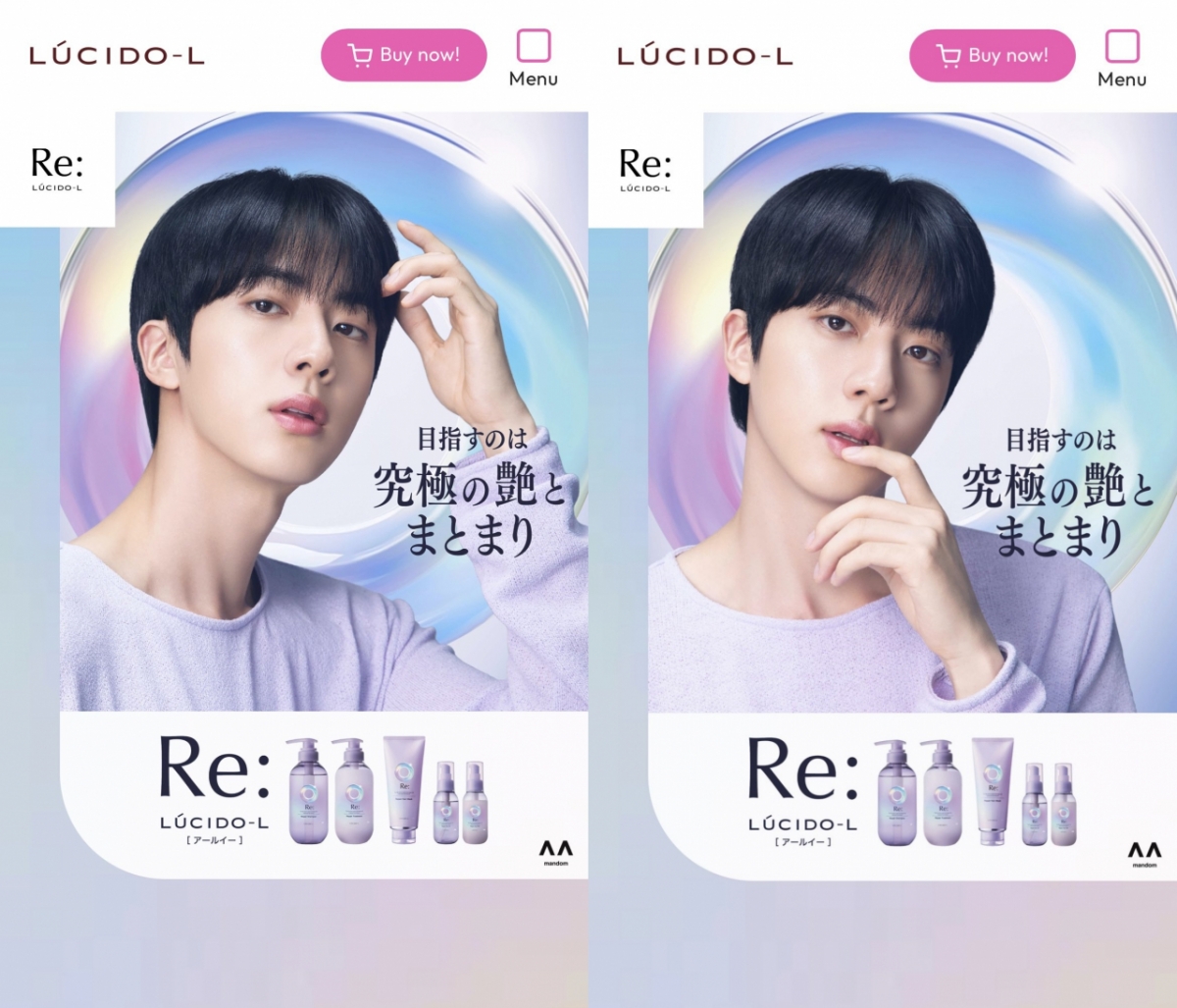 지난 17일 일본 오리콘 뉴스 등의 매체에 따르면 진은 헤어 뷰티 코스메틱 브랜드 루시도엘 (LUCIDO-L, ルシードエル)의 새로운 시리즈인 'Re:'의 캠페인 앰배서더에 발탁됐다.