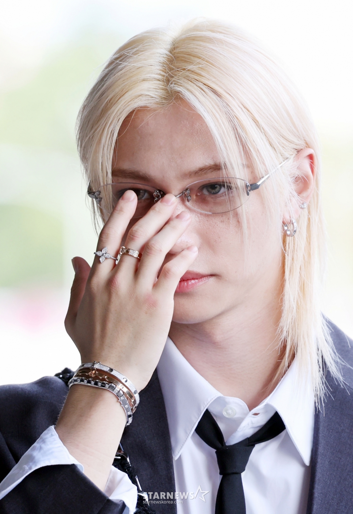 이날 필릭스는 캐주얼한 블랙&화이트 수트에 젠틀몬스터 안경으로 포인트를 주어 필릭스만의 힙한 무드가 돋보이는 공항패션을 선보였다