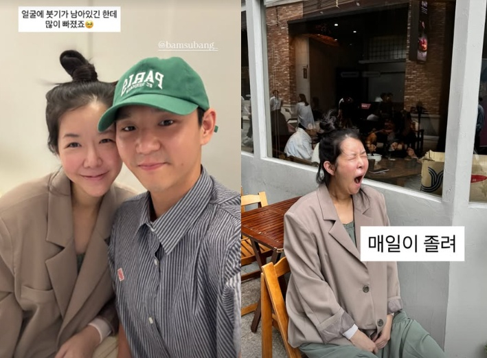 이어 "매일이 졸려"라며 "삭신이 쑤신당. 말끔히 나아보겠어"라고 힘을 냈다.