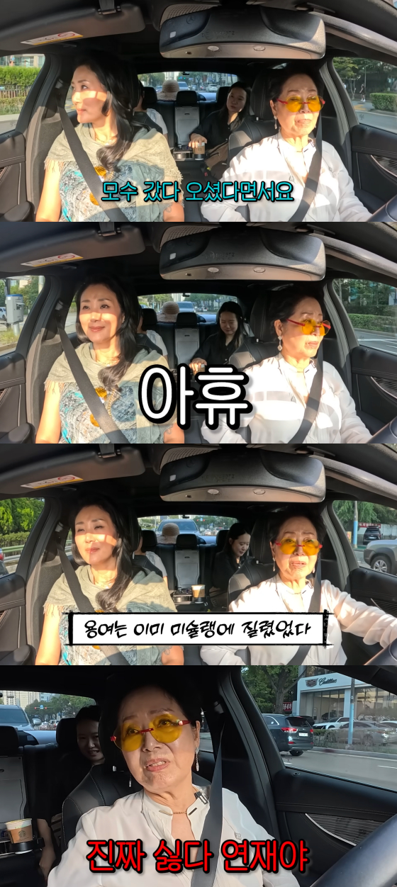 지난 17일 선우용여 유튜브 채널에는 선우용여와 그의 딸 최연재 씨와 함께 차를 타고 이동하는 모습이 담긴 영상이 게재됐다.
