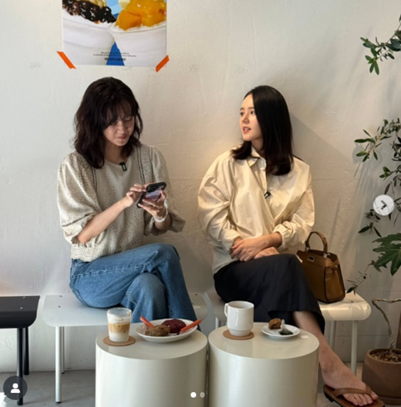 한가인은 18일 자신의 개인계정에 신현빈과 함께 카페에서 만나서 다정하게 찍은 사진을 게재했다. 두 사람은 함께 편안한 모습이다.
