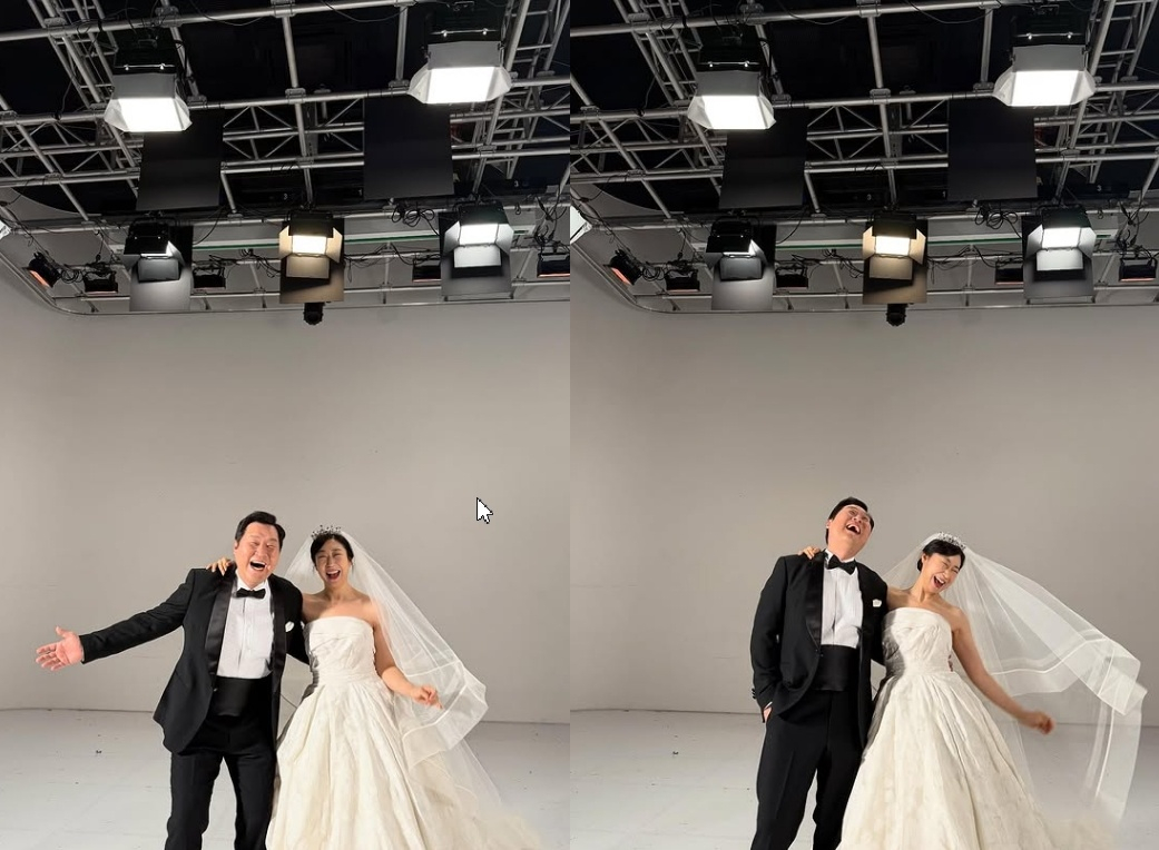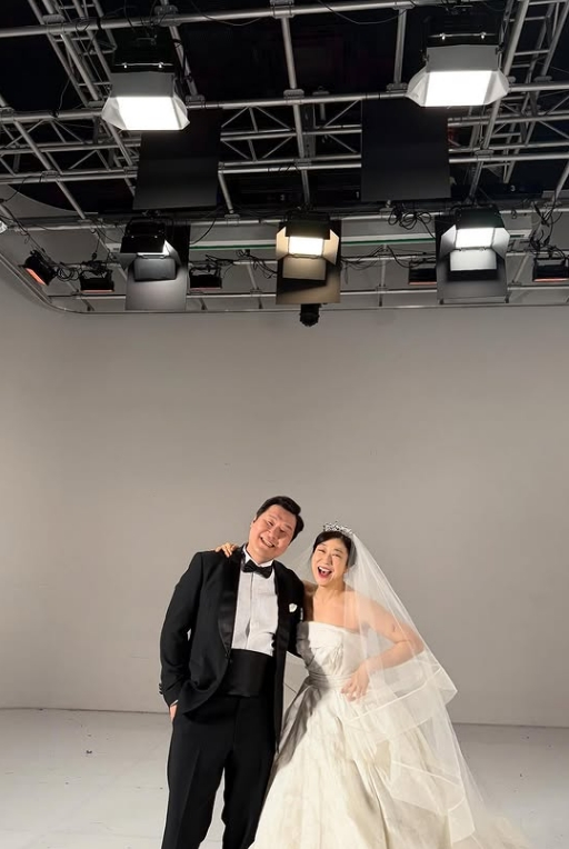배우 라미란이 윤경호와 함께한 웨딩 촬영 현장을 공개했다.