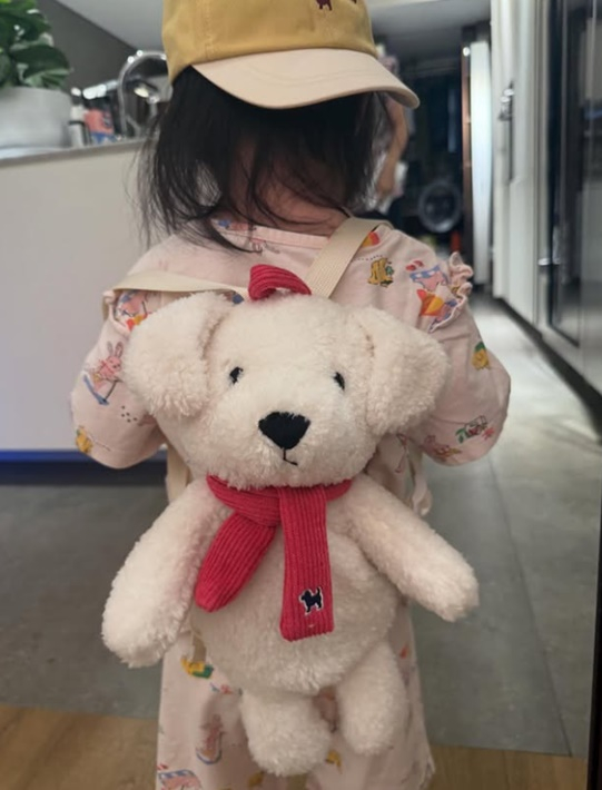 이민정은 19일 자신의 개인계정에 여러개의 하트와 함께 딸 서이 양의 뒷모습을 공개했다. 서이양은 곰돌이 모양의 가방을 어깨에 메고 모자를 쓰고 서 있는 모습. 야무지게 가방끈을 손으로 잡고 있는 모습까지 깜찍하다.