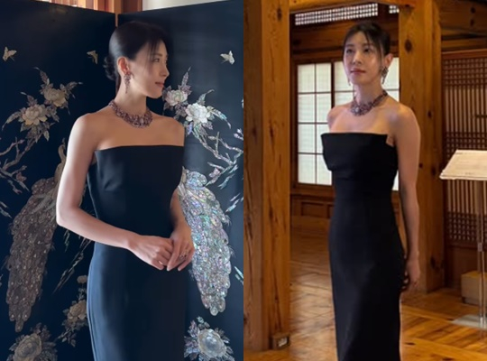 하지원은 한 이탈리아 하이 주얼리 브랜드 행사에서 찍은 사진으로 미모를 자랑했다. 하지원은 오프 숄더 드레스를 입고 늘씬하면서도 볼륨감 있는 몸매를 자랑한다.