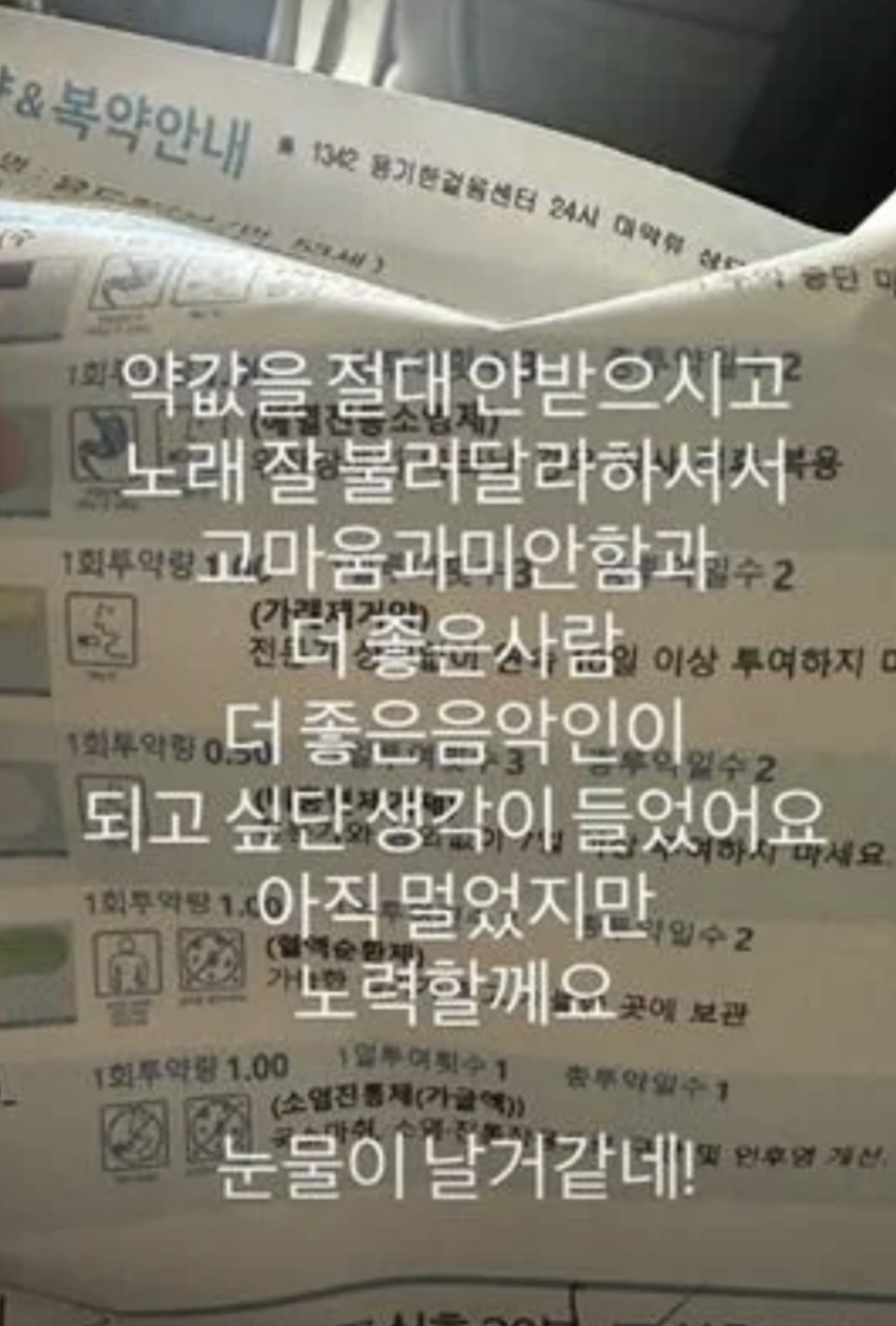 해당 게시물에 윤도현은 "(약사가) 약값을 절대 안 받으시고 노래 잘 불러달라고 하셔서 고마움과 미안함(을 느꼈다)"며 "더 좋은 사람, 더 좋은 음악인이 되고 싶다는 생각이 들었다. 아직 멀었지만 노력하겠다. 눈물이 날 거 같다"고 적으며 당시 느꼈던 진심 어린 감정을 전했다.