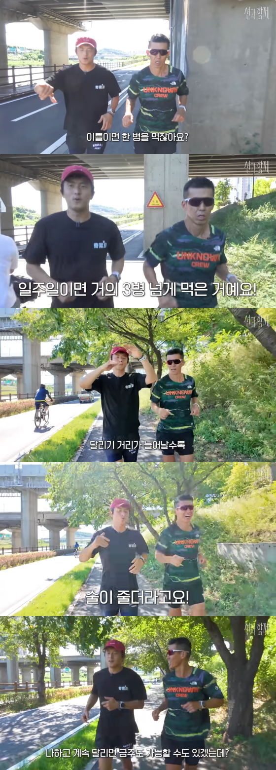 그는 또 "술을 안 먹으면 잠을 못 잤다. 일주일에 위스키를 세 병 이상 마셨다. 그 독주를. 신기한 게 달리기 거리가 늘어날수록 술이 줄더라"고 말했다.