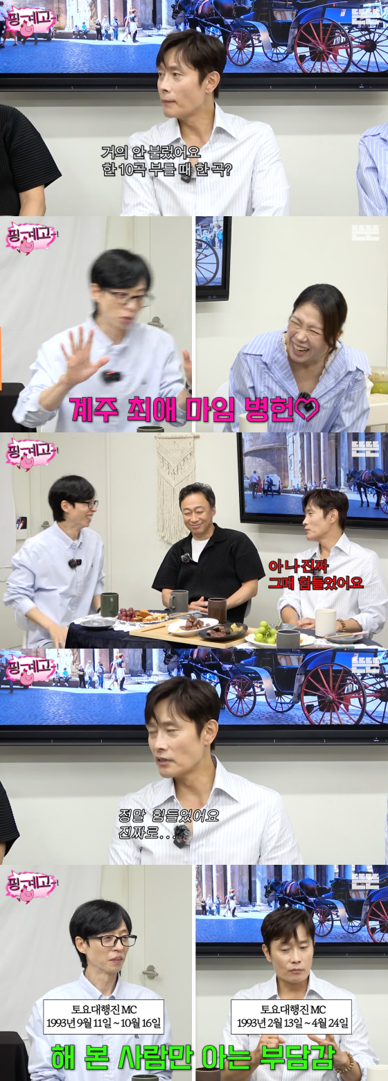 이에 이병헌은 "그때 진짜 힘들었다"며 "(프로그램을) 두세 달 정도 하다 그만뒀는데 정말 힘들었다. 당시 염정아 씨와 같이 사회를 봤는데 쇼 시작할 때 매주 그 당시 유행하는 노래를 해야 했고 나중에는 브레이크 댄스까지 췄다"고 회상했다.